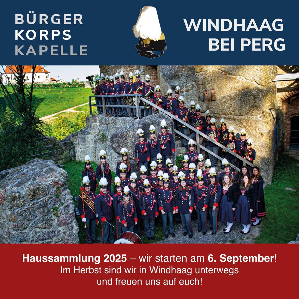 Die Bürgerkorpskapelle Windhaag bei Perg führt nach acht Jahren im Herbst 2025 wieder eine Haussammlung durch.
